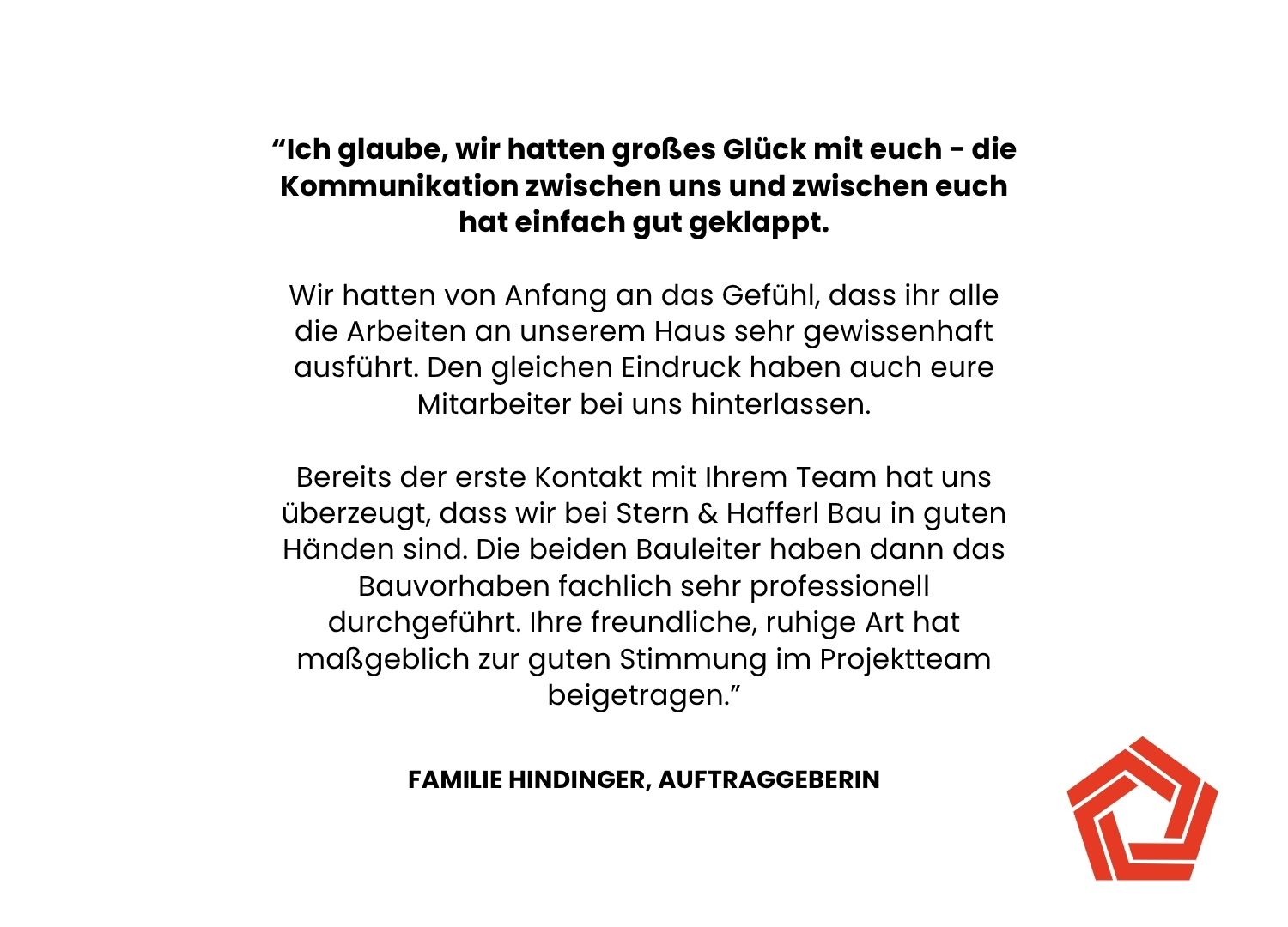 Ein herzliches Dankeschön an die Familie Hindinger als Auftraggeberin für das wertschätzende Feedback – auf die gelungene Zusammenarbeit sind wir stolz!