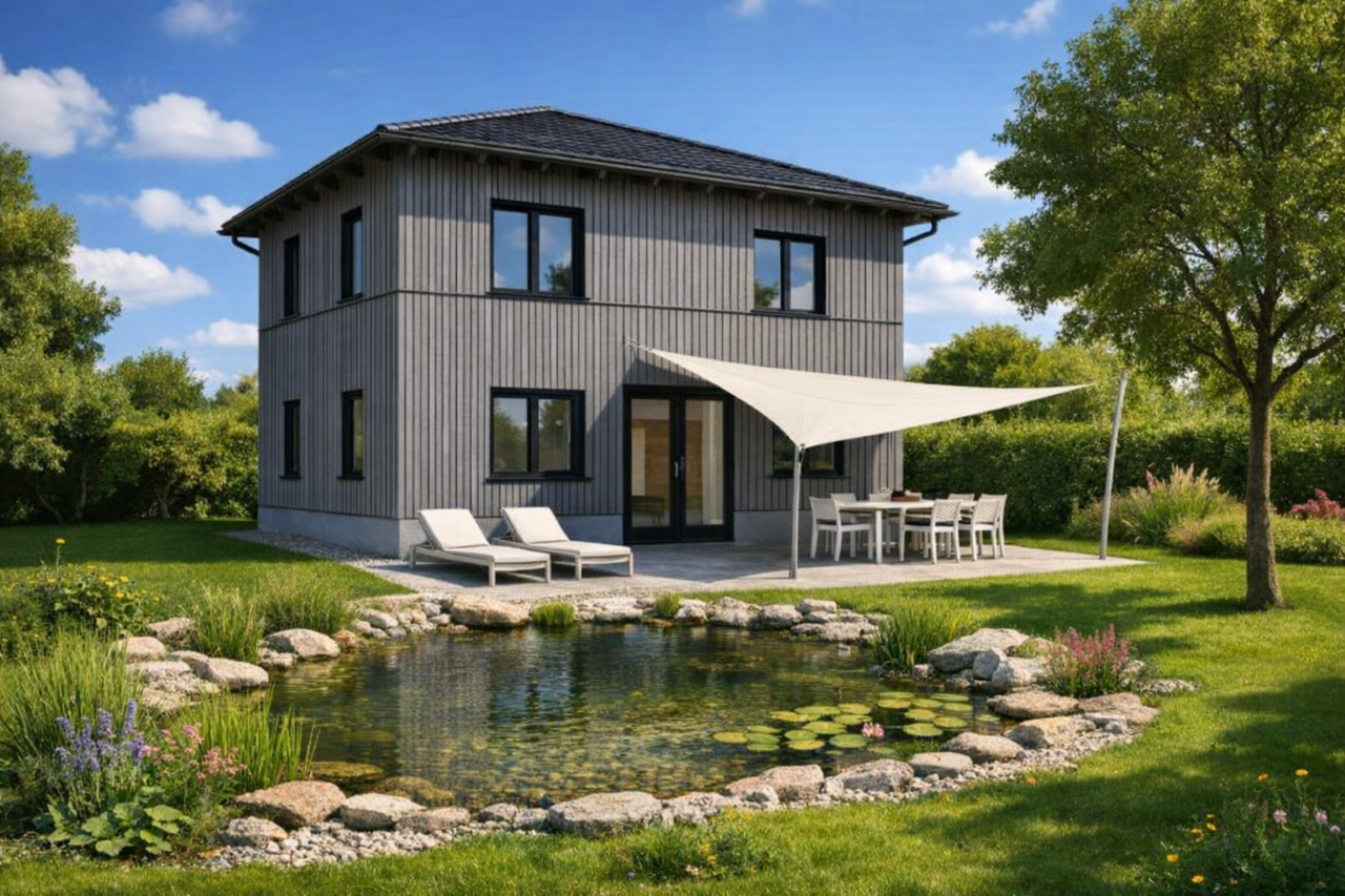 Ein Familiennest aus Holz – bis zum 30. Juni 2026 bereits ab 389.990,- Euro – mit rund 133 Quadratmetern Wohnfläche, Luftwärmepumpe und hochwertiger Ausstattung, das für heute gebaut und für morgen gedacht ist.