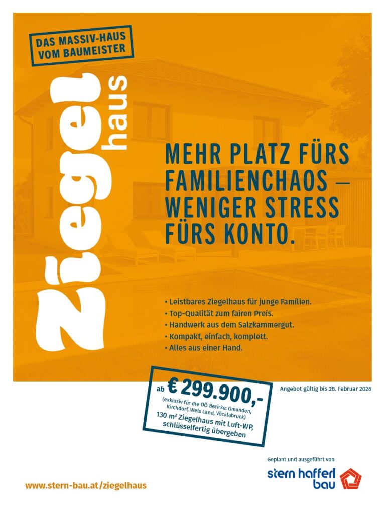 Unser kompaktes Ziegelhaus verbindet Top-Qualität mit echter Leistbarkeit und wird von erfahrenen Handwerkern aus dem Salzkammergut gefertigt.